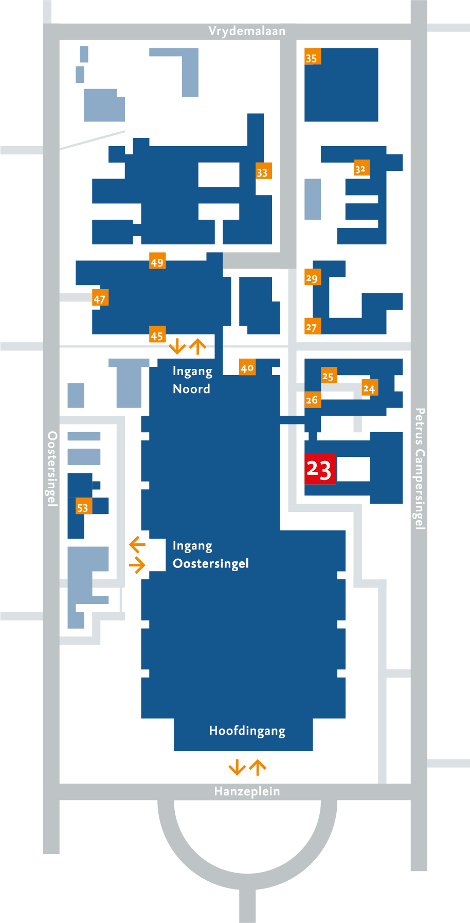 UMCG terrein, ingang via de Vrydemalaan in Groningen (auto en/of fiets) of via de Petrus Campersingel (fiets)